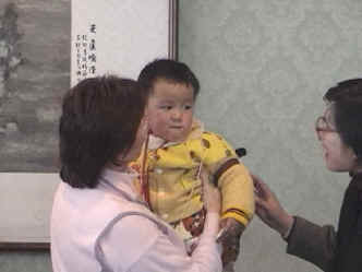 After checking out of our hotel in Beijing and taking a 90 minute flight to the city of Nanjing, we are now in the Grand Hotel for only one night. It is hard to express in a short summary what we experienced today, but in a 6th floor meeting room of the Grand Hotel in Nanjing (JiangSu Province), we met Shane (Yang Fu) and he is forever ours! As expected, he was not too happy with the situation when the people familiar to him left and he realized he was now with yet another set of strangers, but we worked through that and by the end of the day had him laughing and running and playing with us, and even hollering "mama" at Jocelyn when she got up at the restaurant to go get some food. He was sad again at the end of the day, but fell asleep in his new mama's arms and is now fast asleep. Rather than bore you with written details, and since we are very tired, we will just get these photos posted and you can enjoy them, understanding that each one is worth at least a thousand words! Tomorrow, we do paperwork in the morning and then take a bus ride to Yangzhou, where Shane's orphanage is, and where we'll spend the next two nights. Goodnight all. Precious photos from today: