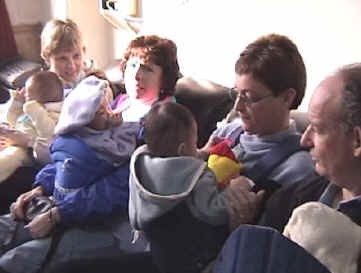 DAY FOUR: Nanjing -> Yangzhou Today, our second day with little Shane Fu in our care and part of our lives every moment, was less of a "vacation" and a little more tedious. Shane Fu has done his part by keeping us on the run and completely wearing us out...he's got us parents on HIS sleeping schedule, because we know that that is the only chance we'll get for some rest of our own! As advertised, Shane is very active, lots of fun, but can be quite demanding and resistant at times (the write-up we received from the orphanage described him as "hot-headed" and "naughty" - and now we know what they mean, but we just LOVE that about him...he is a wonderful little guy). It's quite hilarious in our traveling group -- there are nine little baby girls that sit in their parents' laps and look peacefully at them most of the time...and then there is Shane, who is running and climbing and hollering and generally disrupting any peacefulness that this process might normally entail. None of this in a bad way...most of the parents are probably looking at us and are very glad they are not the ones running and chasing their children all the time! There was the time that Kevin let Shane hold a piece of bamboo that we found and had him riding on his shoulders as we walked near our waiting bus....and he promptly whacked the front of the bus with it. The bus driver almost leaped out of his seat in surprise and I quickly whipped out one of two Chinese phrases that I know -- "dway-boo-chee," which means "I'm sorry." We could go on with many funny little stories, but Shane will be waking up soon (he IS an excellent sleeper) and we can't be doing THIS without him demanding to use the computer... As for our stops on Monday, we started in Nanjing and spent a couple hours in the office of the Registrar completing some adoption paperwork. Nanjing is the capital city of the JiangSu province and so this was the "state level" paperwork. It WAS the step that made our adoption of Shane legal and official in China. After going back to the hotel and packing and checking out, we grabbed a quick bite of lunch (which is getting more adventuresome all the time what with the food itself and now with Shane's involvement in it!) we took a 2 hour bus ride (on which we did find out that Shane is capable of taking a nap! Woohoo!) to the city of Yangzhou. This is the city where Shane was found in 1998, so it is assumed to be his birth city and it is also the location of his orphanage. We spent most of the afternoon in the office of the Notary (city officials) for more paperwork. According to Helen, we completed most all of the paperwork yesterday, so we're glad about that. It is a challenge keeping Shane occupied and happy while confining him to small office spaces with so many things to grab and destroy! We are now checked in to the Grand Metropole Hotel of Yangzhou, and once again, it is a beautiful and almost brand new place. While the beds seem to be hard everywhere, these hotels are all absolutely comfortable and wonderful. We will stay here for two nights, with the highlight of Tuesday being a visit to Shane's orphanage here in Yangzhou. We wrapped up Monday with quite an adventure. We decided to take a little stroll after dark around 6pm (well after dark), and to try something different from hotel food. Well, more than either of the previous two cities, Yangzhou is much more devoid of English signs and we were pretty clueless. We stopped into a "grocery store" looking for some bottled water and maybe a toy or two for Shane. We found the water, but no toys...and Shane found quite a spread of candy, so we let him pick some out. At one point in this store, someone said "hello" to Jocelyn, and when she responded, we guess that confirmed that we were Americans. Within seconds, we were surrounded by about a dozen store employees giggling and looking at Shane and wanting to hold him, etc. No words could be exchanged because they would have been useless...just lots of smiles and laughter and that "oh, isn't he cute" expressions on their faces. Next, we continued on to find a restaurant for dinner. This story is WAY too long for this web page, but in the end, Jocelyn was rather embarrassed while Kevin thought it was hilariously fun. If you ever speak with us, make sure to ask us about the "Yangzhou restaurant story". We DID survive and made it back to the hotel and called it a night. I was too tired to connect the camera and download the photos for the day, so this posting is late by a day. Photos from today: