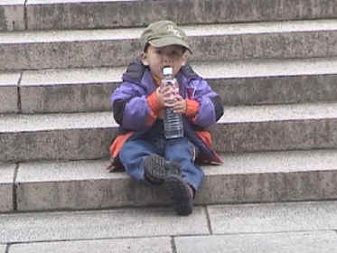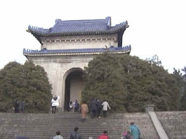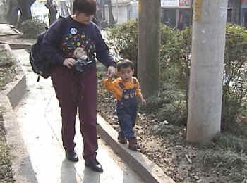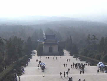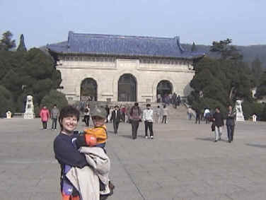 DAY SEVEN: Nanjing Today was probably the quietest day yet, and as such, time is starting to move slowly and we're getting the itch to get home. But alas, we are only halfway through. This morning we were going to make a two-stop sightseeing trip, but ended up only doing one as it took longer than anticipated, and given the opportunity to make another stop or go back to the hotel, the majority said to go back to the hotel and try again tomorrow. Today's one "sight" was the mausoleum of some historical Chinese figure whose name escapes us. It was mentioned several times and we saw it on signs, but we'd prefer to just say "famous historical figure" than butcher a name we don't really remember. There were a lot of Chinese tourists there, and it's supposedly a very famous place. After the Great Wall experience, we weren't exactly excited to hear that we had 392 steps to climb, and Shane preferred to be carried, so it was work for us old folks. Regardless, it was quite a nice view once we made it to the top. We continue to turn a lot of heads with the image of Caucasian folks with a Chinese baby...and we think the fact that Shane is a boy adds to the curiosity. We returned to the hotel and hit the streets once again looking for lunch. This time we found a pizza place, and it turned out to be quite good deep dish stuff. Kevin's tummy has returned to normal. Once again, these jaunts out into the city streets always turns up fascinating sights. There is always a new thing being carried on a bike that we hadn't seen before or a new smell (not always good) that we hadn't experienced. For dinner, our Nanjing tour guide arranged a nice dinner for us in one of the hotel dining rooms and the food was good. Shane eats pretty much everything and really likes tofu and watermelon. We would guess that our three boys at home wouldn't touch 90% of what he eats, so it will be interesting to see if and how that changes as Shane makes the transition to becoming an American kid. Well, we think that's it for today. We still stay in Nanjing on Friday and make our next change in cities on Saturday. Today's Photographs: