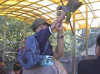 DAY TEN: Guangzhou OK, this trip is starting to feel long. We really miss our 3 boys at home in Scottsdale...we almost feel like we're cheating on them going on vacation with a strange kid and leaving them behind. After today, though, only THREE MORE DAYS in China and then we go home. Woohoo! Today was our last sightseeing day. The next two will be medical exams and interviews with American officials to complete all the final details to be able to bring Shane Fu home. There were two major events for us today. First, we took a bus ride to White Cloud Mountain, a very cool little "paradise" spot at the top of a nearby mountain. Thankfully, we didn't need to climb this one, like we did the Great Wall and the Dr. Sun Yat Sen (sp?) mausoleum. There was a bird aviary and just a nice peaceful and well-manicured tropical setting. We saw a bird show (see below) and lots of nice scenery. It was a Sunday, so there were lots of people there. Later in the afternoon, there were 8 of us in our group that wanted to go visit the "free market" in Guangzhou. We were the only ones to bring along our child...probably wouldn't have been a good idea for babies and THANKFULLY one of the other families let us borrow their child backpack which allowed Shane to ride more comfortably and "in control," while keeping Dad's back from breaking (although just barely). The free market was an incredible experience and you'd have to see the video to really appreciate what we saw. Lots of live animals for sale and many sights that would turn a weak stomach. Two things -- we're glad we visited AFTER lunch and we were so glad it was December and not a steamy hot July or August day. We couldn't imagine what the smell would've been like. Again, being a Sunday afternoon, the marketplace was packed and it was unlike anything we'd ever seen before. It is so fascinating how this method of selling "fresh" food mixes in with all the various "classes" of Chinese people. Just amazing. We walked the marketplaces and shops and streets for a couple hours and Shane rode like a champ. After that, though, and given the previous night's dining experience, we decided to stay in our hotel room for dinner tonight. Someone had informed us of a restaurant that delivered that served Italian food and so we placed an order with Danny's Bagels and we soon took delivery of a sausage and mushroom pizza and a tin of lasagna. It wasn't melt-in-your-mouth, just-like-home taste, but it was pretty darn good under the circumstances. Unfortunately, it seemed to be Mama's turn not to feel well, so she didn't quite enjoy it as much as she might have. Well, another day in the books. Tomorrow, Shane Fu gets to get a quick medical checkup (required at this point of the process for all adopted kids) and we think the rest of the day is open so we'll probably try to get some shopping in. Today's Pics: