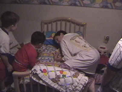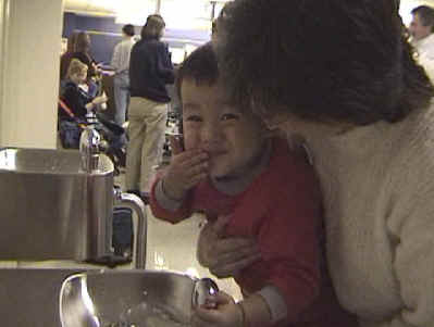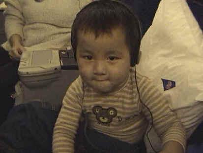 DAY THIRTEEN: Guangzhou -> Los Angeles -> Scottsdale This final day update page is being composed from the good 'ol USA. We made it home, but here's a recap of the "longest day" -- Wednesday, December 13th, which for us was 39 hours long! Our flight didn't leave Guangzhou until after 8pm China time, and we didn't have to check out of the White Swan Hotel until 5:30pm, so we had one final day to "kill" before we got to go home. After breakfast, Kevin decided that he would take Jocelyn and Shane to the "mall" that he visited the day prior so he could share his experience, but mainly because he knew there was a Pizza Hut there and that sounded awfully good for lunch. Kevin had previously gotten a little hotel business card with the name of what he thought was the "mall" that he found yesterday written on it in Chinese. With that little document in hand (and our umbrella and borrowed stroller, because it was another cold, rainy day), we confidently boarded a taxicab and showed the driver the card and he shook his head confirming he knew where we wanted to go. Not 3 minutes later, the cab driver stopped and motioned "we're here," but the location did NOT look familiar to Kevin. We tried to ask the taxi driver probing questions like "This is what this card says?" and "Pizza Hut?" -- all in a language he didn't understand. Being in a bit of a bind, Kevin thinks that maybe we're just on the back side of the mall or something, and so we get out of the taxi into the rain and head into the "department store." After wandering a bit and realizing this was not the place -- and definitely no Pizza Hut, we decide to start hiking a bit, hoping we are close. At least we had the card that said "take me back to the White Swan" so we knew at least that we could get home if we got lost -- well we already were lost, so no harm in getting "more lost." We hiked in the rain -- thank goodness for the stroller -- and probably ended up wandering for a mile and believe it or not, we actually found the place we originally were looking for...and the Pizza Hut was open! Shane fell asleep in the stroller during that journey and after a little shopping, we plopped down in the very nice Pizza Hut restaurant for lunch. Ahhh....just like home...even had Celine Dion and Michael Bolton CD's playing Christmas music! After lunch, we taxi'd back to the hotel. At 3:30pm we were all to gather on the 17th floor of the hotel so Helen could distribute the pile of sealed immigrant visa packets that she earlier picked up from the Consulate. This is the final key needed to escape China and bring our boy home! Of course, our resident comedian Leo wanted to know if this was the point where we give the rental babies back!?! We decided to keep ours and packed up and checked out and headed for the Guangzhou airport. It took a while, given the heavy traffic, but we made it into the airport, through customs and check-in and we boarded the plane. We had previously decided to upgrade to business class for this particular leg of the journey. It wasn't cheap, but the extra room was great to have for an active toddler. Thankfully, the long ride home went more quickly than the flight TO China, given westerly tailwinds, and Shane and us actually got a reasonable amount of sleep. They served us breakfast just before the plane landed in LA -- only problem was that the time in LA was 5:00pm. The customs and immigrant check-in process in LA wasn't all that bad. We handed over the mysterious sealed immigrant visa package that we were told not to open, and then after a few minutes, the INS official (or whatever he was) returned with our 3 passports and said we could proceed. The sealed packet stayed with them and we may never know what was inside! After a short layover in LA, and a flight delayed a half hour, we finally boarded our final short hop from LA to Phoenix. It went quickly as Shane took his "afternoon" nap, and we arrived in Phoenix around 10:30pm to a wonderful group of 24 people who were kind enough to stay up late, trek to the airport and greet us. Shane was a little overwhelmed by all the attention, but he charmed them and WE WERE HOME and our new little family of SIX was finally together in one place! We got our bags (they all made it!) and got to the house around midnight. The kids stayed up a bit, but eventually pooped out, and Shane and us stayed up until 3 or 4am...being that our clock was a little backwards. Today's Pictures: